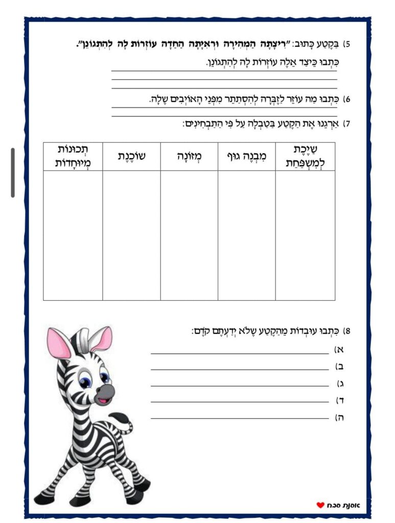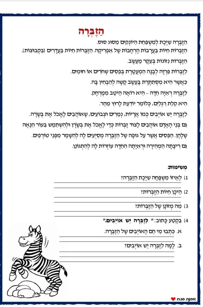 Print הבנת הנקרא -הזברה Postedمارس 5, 2026 Updatedمارس 5, 2026 Bydoritlevialdi Views1 שלום, תלמידים יקרים ,מאחלת לכם ימים שקטים שימו לב לכתוב כותרת מתאימה ,לציין תאריך , ולהקפיד על כתב יד קריא ונקיי עבודה נהדרת