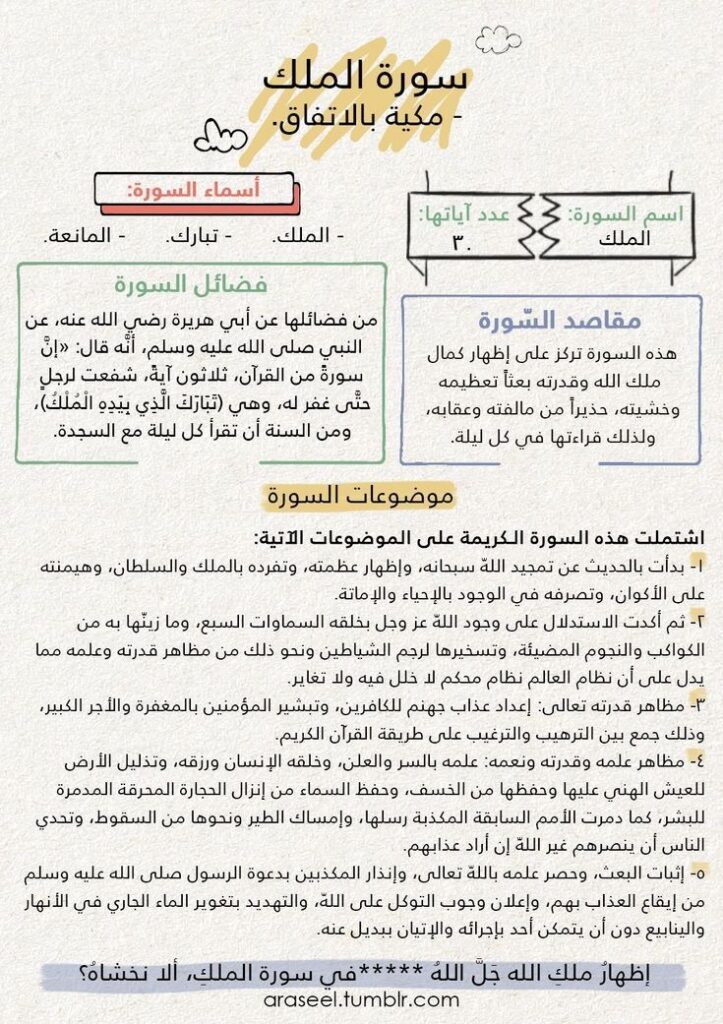 المطلوب منكم حفظ سورة الملك