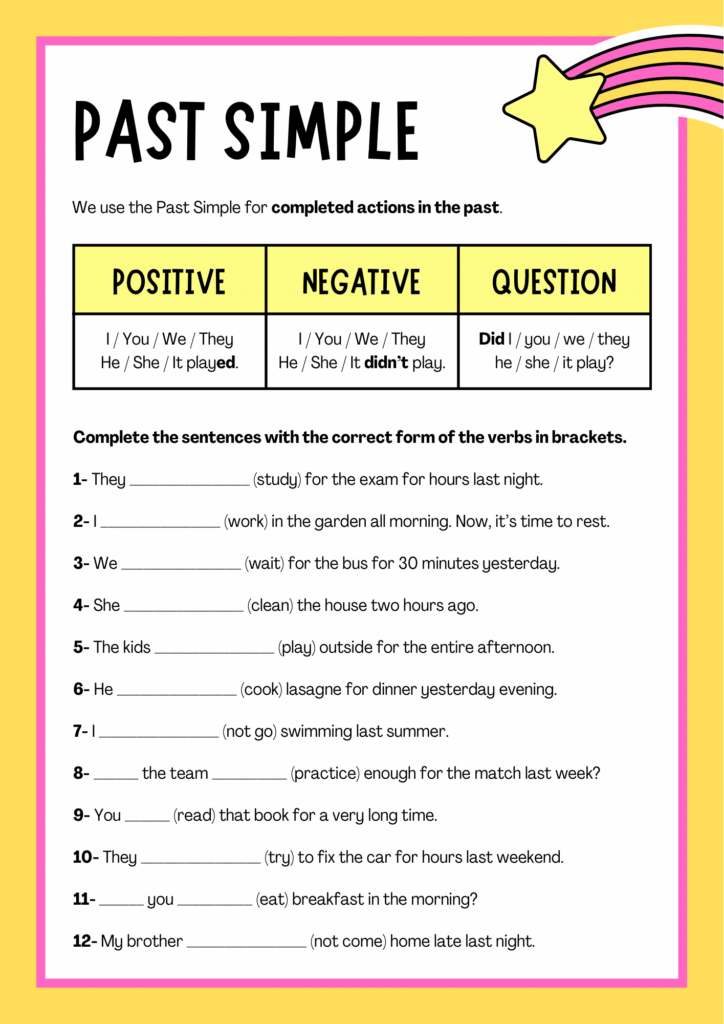 I uploaded a worksheet about the Past Simple – the tense we learned in class.