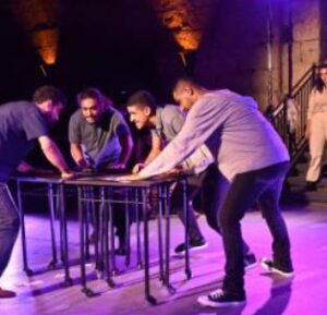 اعداد وإخراج: محمد عيد. عمل درامي غير اعتيادي، الجمهور فيه مشارك فعال ومتورط في تسلسل الأحداث. المسرحية تقوم على عدة