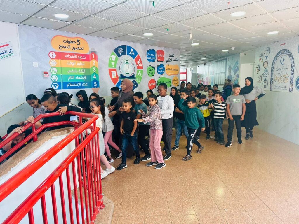 تدريب الطلاب لتمرين طوارئ وفقا لتعليمات الجبهة الداخلية