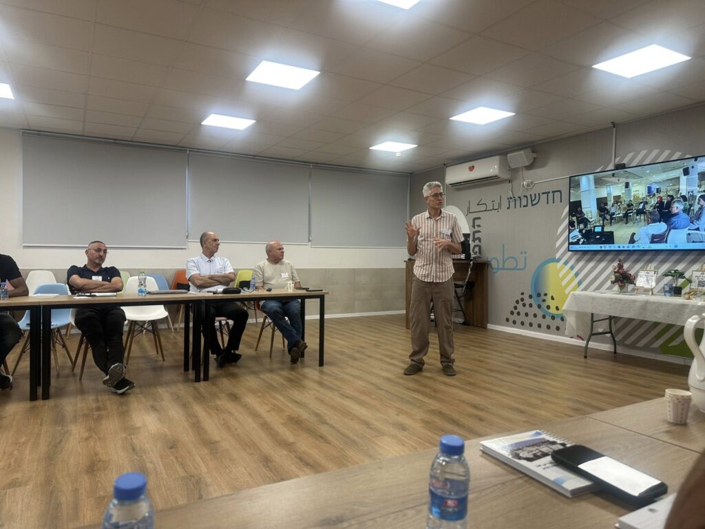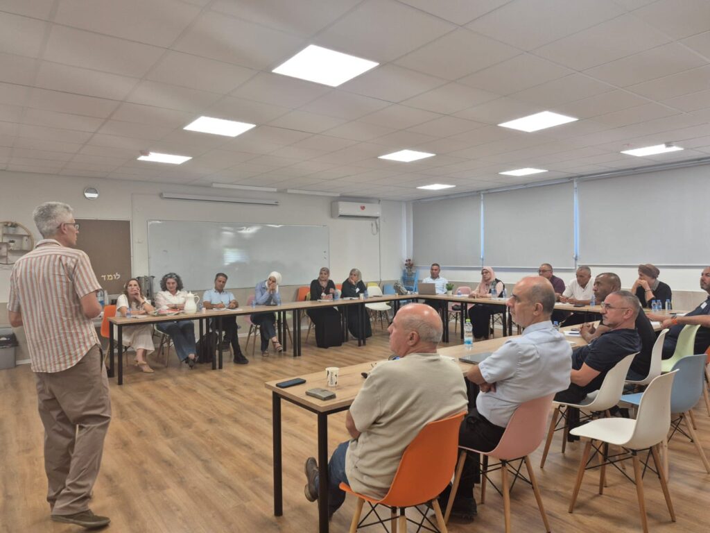 بمشاركة مفتشة التطوير المهني الدكتورة بت عمي لقمان والمفتش يارون شنايد، عرض المديرون مسيرة ثلاث سنوات من التعلم والتطوير المهني – مسيرة حافلة بالتحديات والتعلم والعمل المتواصل من أجل النهوض بجهاز التربية والتعليم في المجتمع البدوي.