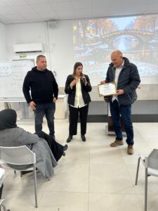 وبارك للطلاب جهودهم كل من جمال الهزيل مدير قسم التربية وأميرة ابو سرحان عاملة اجتماعية من سلطة الأمن والأمان.