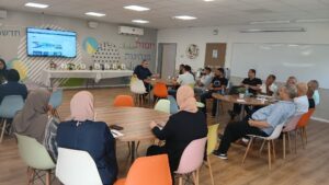 תמונות ממפגש למידת עמיתים לרכזי שפה המשתתפים בתכנית מאמני עברית. בהשתתפות המפקח סאלם אלקרינאוי
